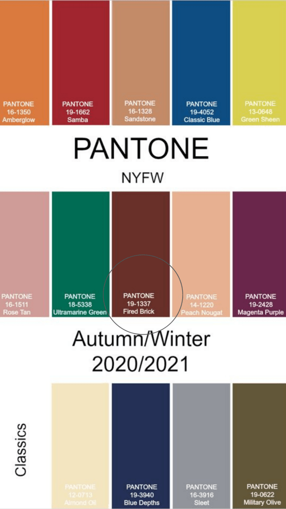 En esta oportunidad me adelanté y tomé uno de los colores que vienen como tendencia en Pantone para el 20/21 Fired brick, que sería como un terracota, deribado del colores de la tierra.