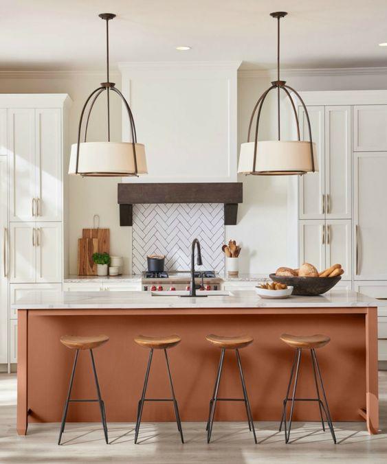La cocina nos permite una gran variedad de elementos para jugar, puede ser la pintura de las paredes, puede ser el mobiliario con tapizado al tono, pueden ser mosaicos decorados en composé haciendo un diseño en la alzada, puede ser revestimientos de venecitas o una isla colorida. El color va a ser el hilo conductor de toda la casa en este diseño.