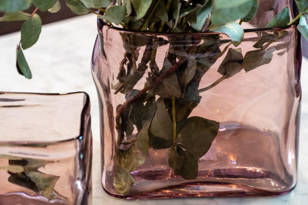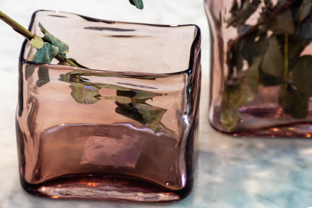 Florero artesanal de vidrio color rosa, un obra de arte, imperdible!